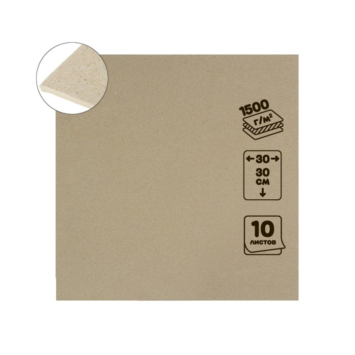Картон переплётный 2.5 мм, 30 х 30 см, 10 листов, 1500 г/м", серый
