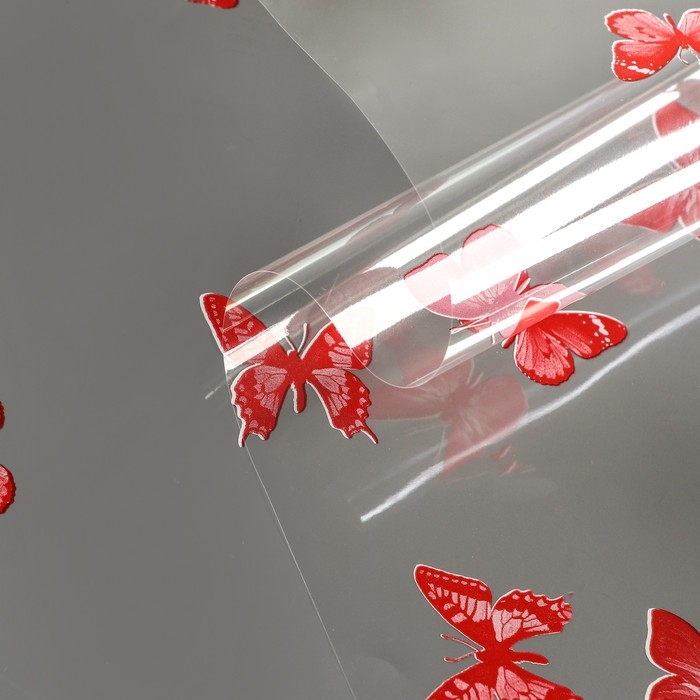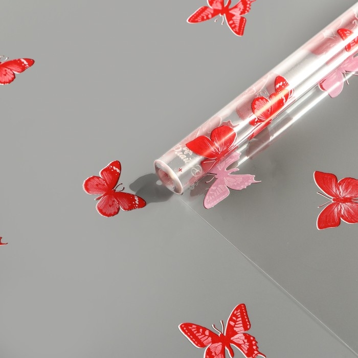 Пленка для цветов "Бабочки" красный+белый 0,7 х 8.2 м, 40мкм