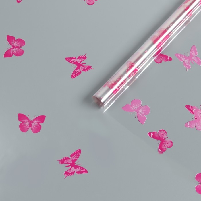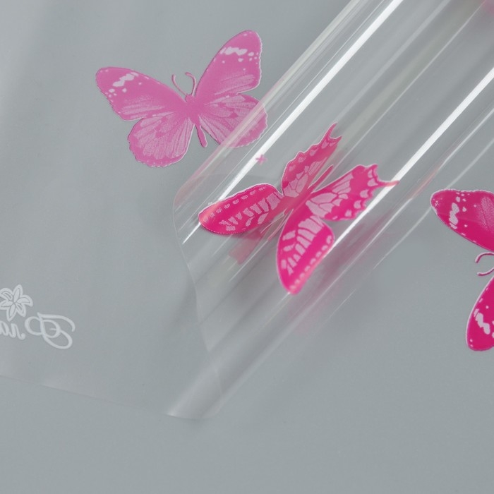 Пленка для цветов "Бабочки" розовый+белый 0,7 х 8.2 м, 40мкм