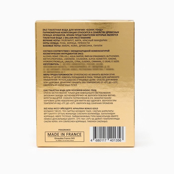 BONUS GOLD, туалетная вода для мужчин.