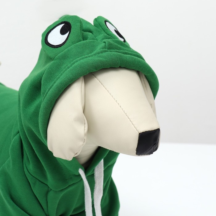 Она выполнена из мягкого и приятного на ощупь материала, который обеспечивает комфорт и тепло в холодную погоду. Капюшон в форме головы лягушки с большими глазами создает забавный и милый образ вашему питомцу, а благодаря завязкам можно регулировать размер капюшона, это обеспечивает дополнительную защиту от холода и ветра.