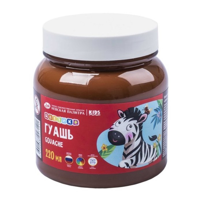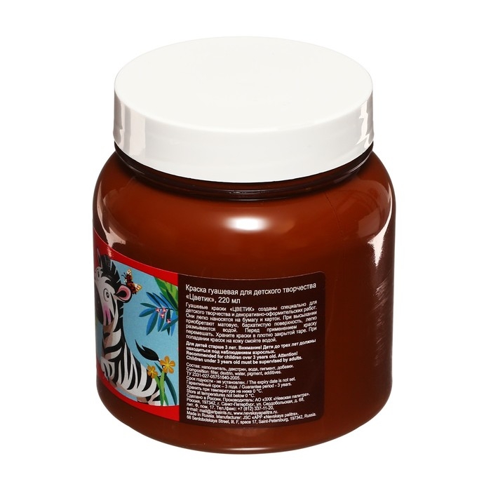Гуашь банка 220 мл, ЗХК "Цветик", коричневая, 3023419