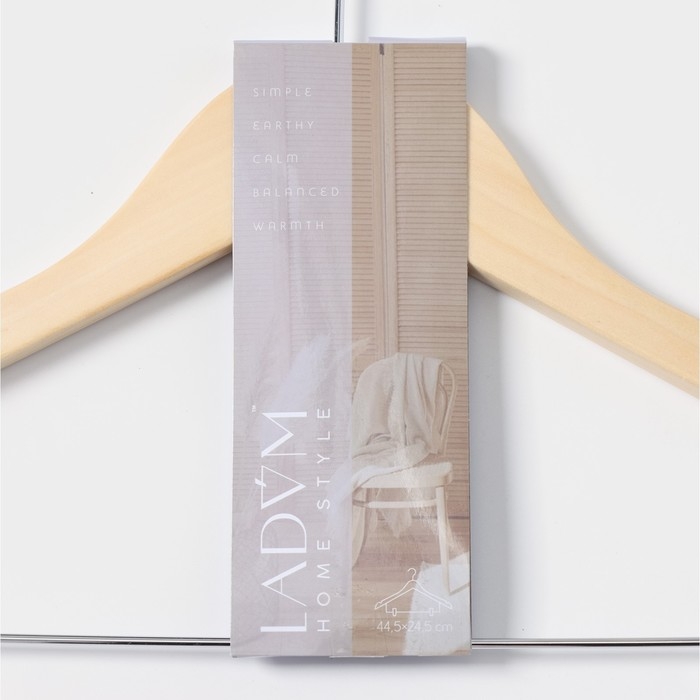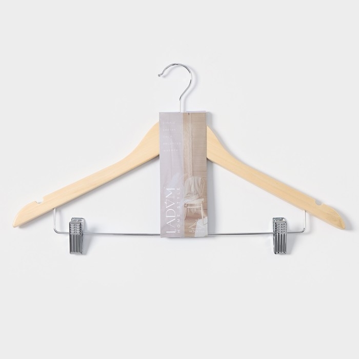 Плечики - вешалка для брюк и юбок LaDо́m Bois, 44,5×1,2×24,5 см, с зажимами, широкие плечики, деревянная сорт А, цвет светлое дерево