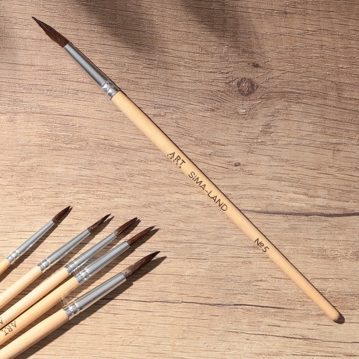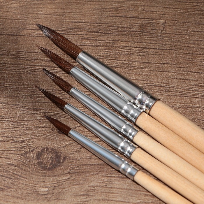 Набор кистей белка круглые 5 штук (№1,2,3,4,5) с деревянными ручками на блистере