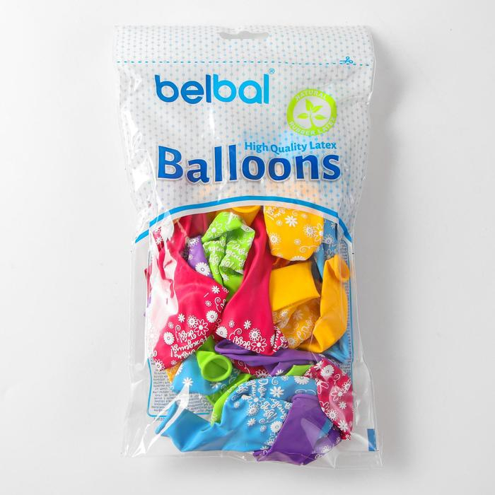 Шар латексный 14" «С днём рождения тебя!», цветы, пастель, шелкография, набор 25 шт., МИКС