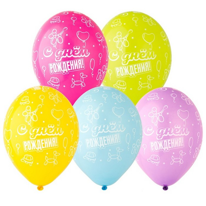 Шар латексный 14" «С днём рождения!», твистинг, пастель, шелкография, набор 25 шт., МИКС