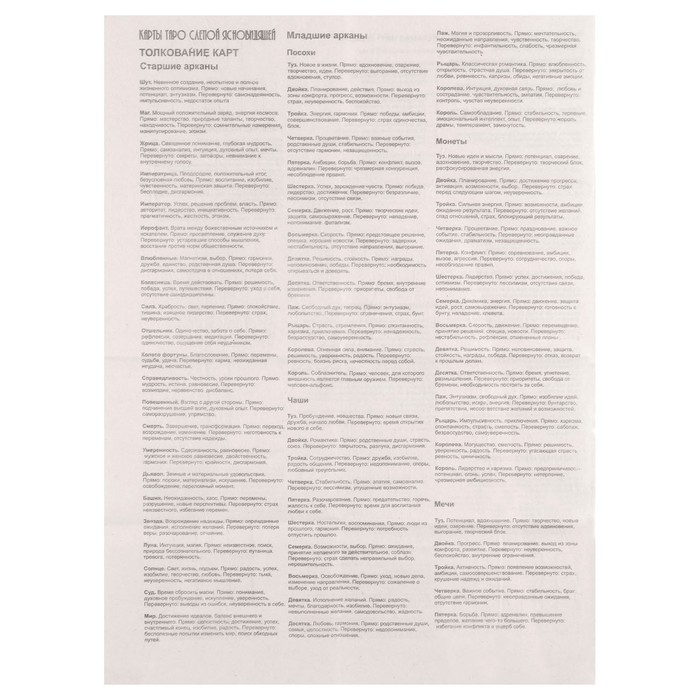 Карты таро "Таро слепой ясновидящей", карты гадальные, с инструкцией, 78 карт, 7.1 х 11.6 см
