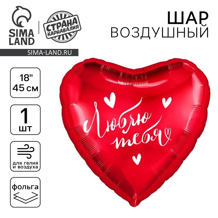 Воздушный шар фольгированный 18" «Люблю тебя», сердце