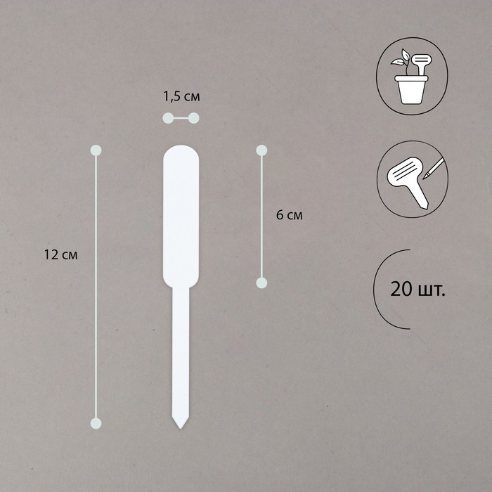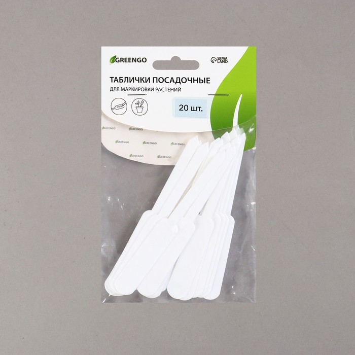 Бирки садовые для маркировки, 6,5 × 5 см, набор 20 шт., пластик, белые, Greengo