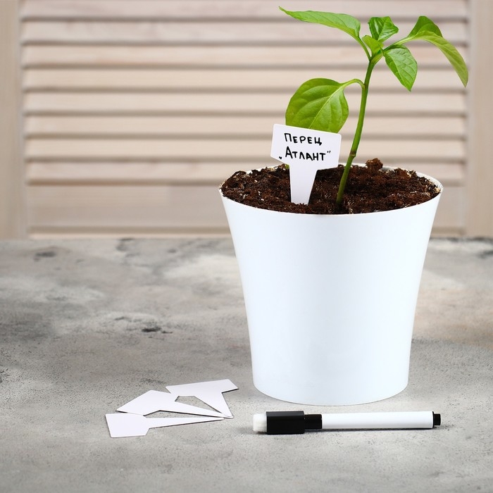 Бирки садовые для маркировки, 10,5 см, набор 20 шт., маркер, пластик, белые, Greengo