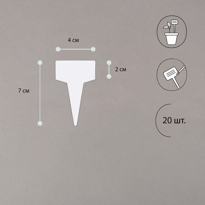 Бирки садовые для маркировки, 6,5 × 5 см, набор 20 шт., пластик, белые, Greengo
