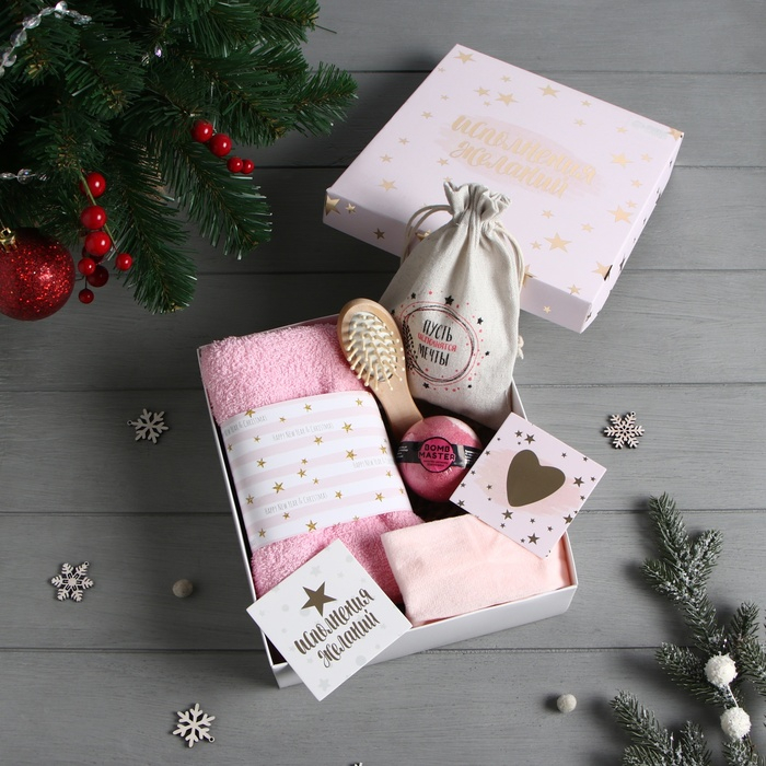 Набор подарочный «Исполнения желаний» полотенце и аксессуары (4 предмета)