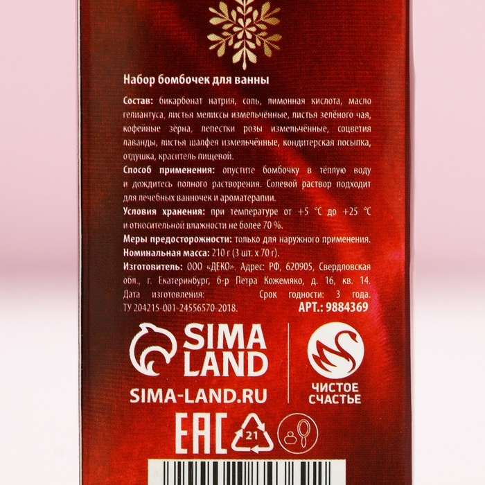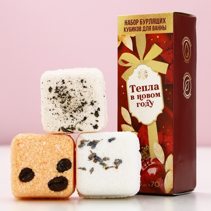 Подарочный набор новогодний, бомбочки для ванны с добавками, 3 х 70 г, Новый Год