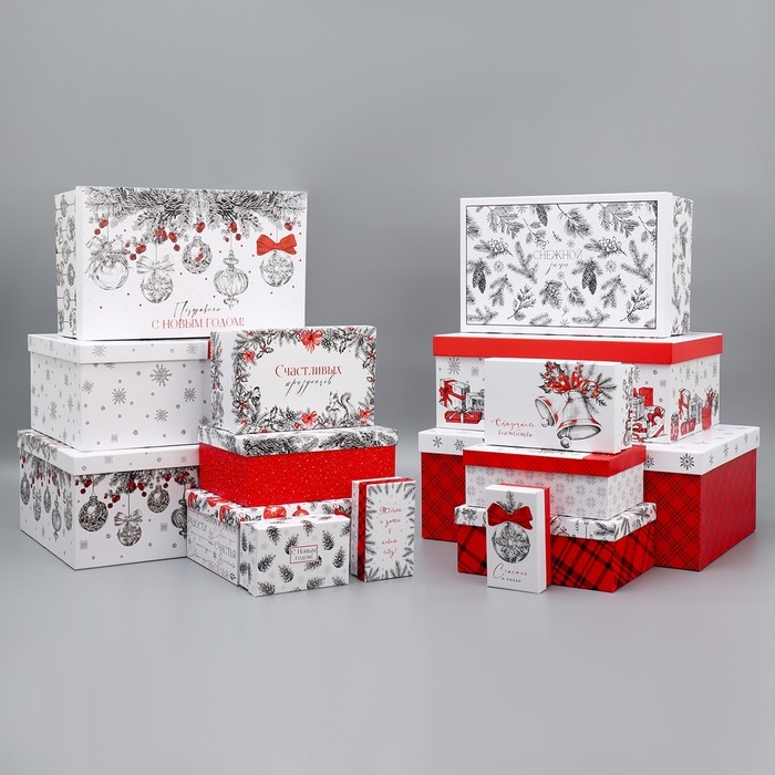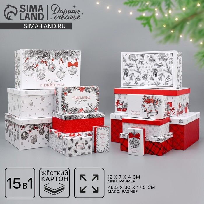 Набор новогодних подарочных коробок 15 в 1 «Счастья и любви», 12 х 6.5 х 4 см - 46.5 х 30 х 17.5 см, Новый год