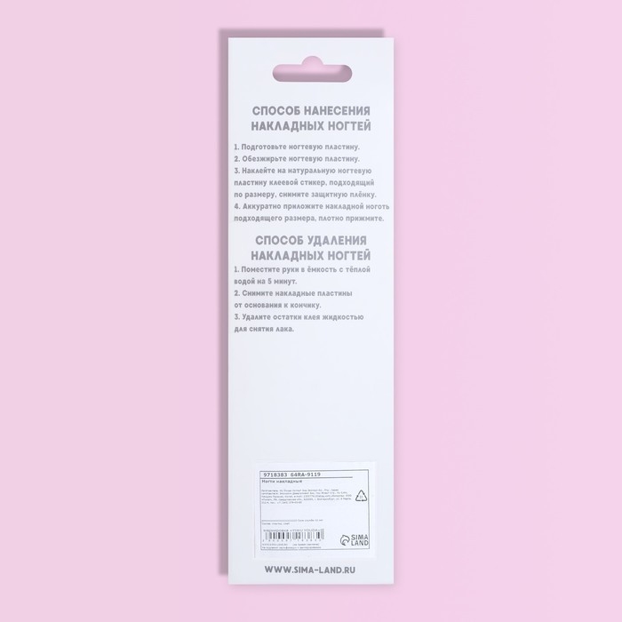 Максимальный срок носки накладных ногтей – 14 дней. Не рекомендуем перенашивать. При бережном ношении могут использоваться несколько раз.