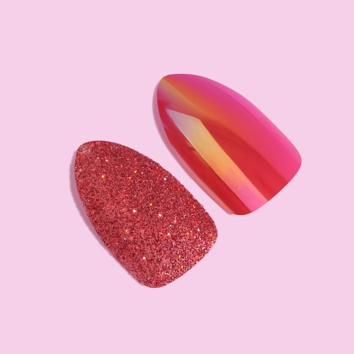 В наборе с накладными ногтями идут клеевые пластины. За счёт этого уменьшается вероятность механического травмирования природного ногтя. Клеевые пластины безопасны в применении и не вредят натуральным ногтям, в отличие от клея. Клей содержит составе высокую токсичность, что может сказаться на вашем организме.