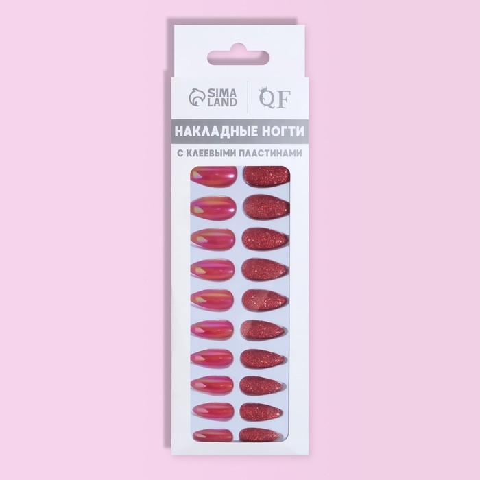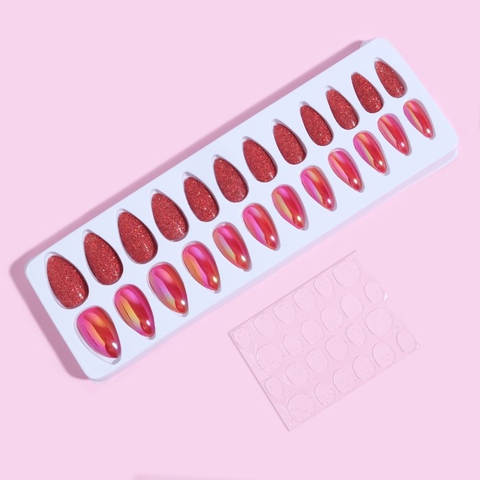 Накладные ногти, 24 шт, с клеевыми пластинами, форма миндаль, блёстки/голография, цвет красный
