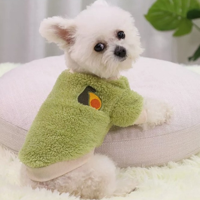 Свитер для животных из велюра в зелёном цвете с уникальным значком авокадо - это уютный и стильный наряд для вашего пушистого спутника. Свитер изготовлен из мягкого и теплого велюра, он обеспечивает комфорт и тепло, его можно носить как в прохладную погоду на прогулку, так и дома.