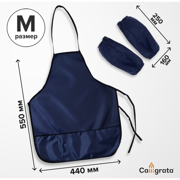 Фартук для труда + нарукавники, 550 х 440/250 х 160 мм, размер M (рост 122-158), Calligrata темно-синий