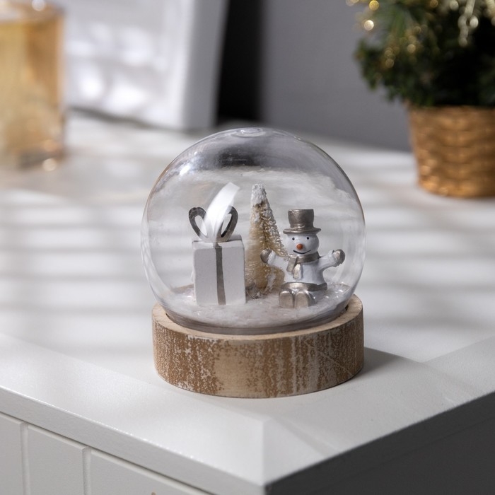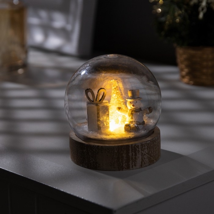 Светодиодная фигура «Шар со снеговиком» 8 × 8.5 × 8 см, дерево, пластик, батарейки AG13х3 (в комплекте), свечение тёплое белое