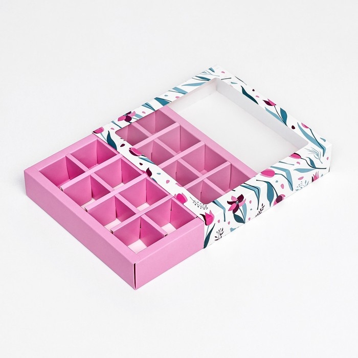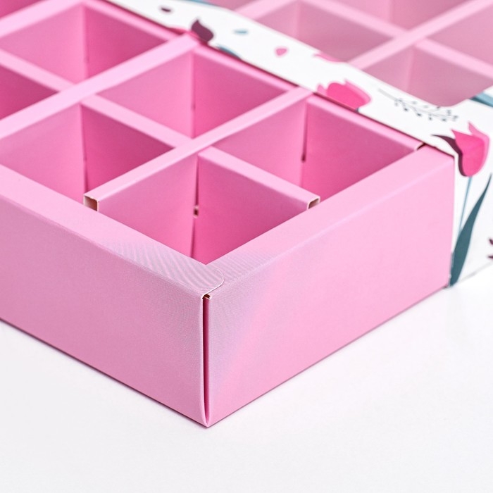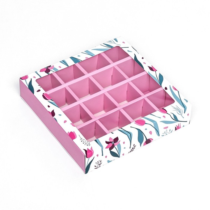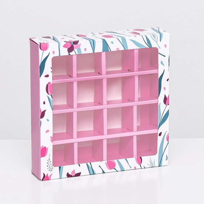 Коробка для 16 конфет , "Тюльпаны" 17,7 х 17,7 х 3,8 см. Кондитерская упаковка