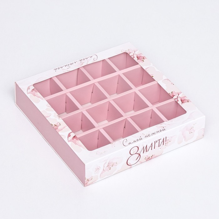 Коробка под 16 конфет с ячейками «Белая», 19 х 19 х 3 см