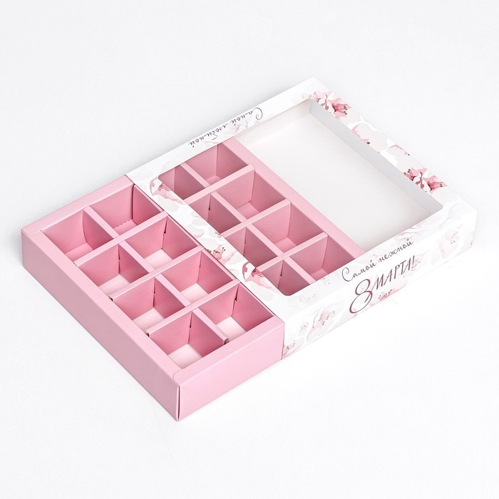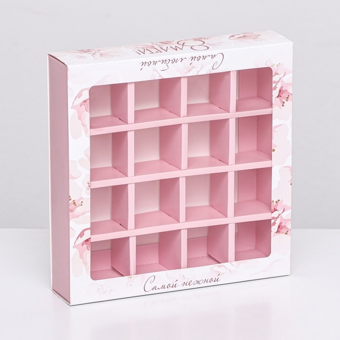 Коробка для 16 конфет , "Самой любимой" 17,7 х 17,7 х 3,8 см. Кондитерская упаковка