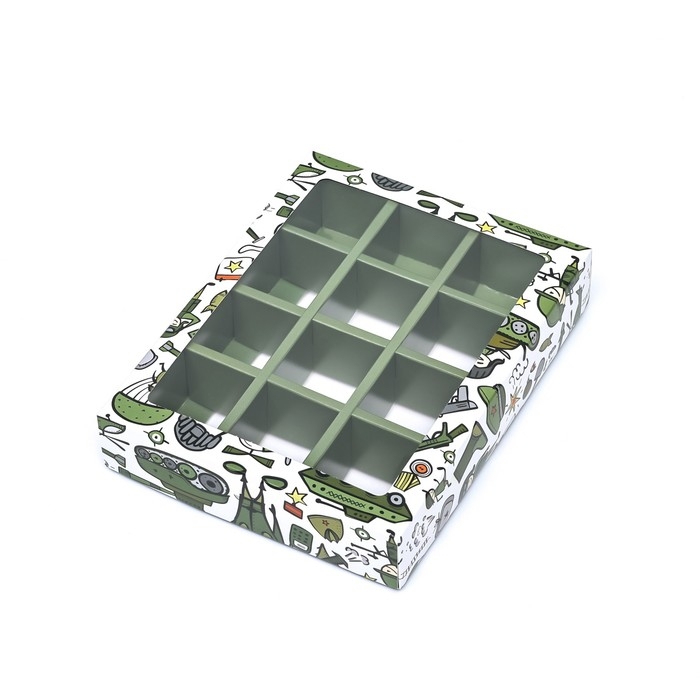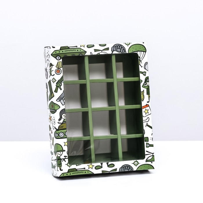 Коробка для 12 конфет , " 23 Февраля" 19 х 15 х 3,6 см. Кондитерская упаковка