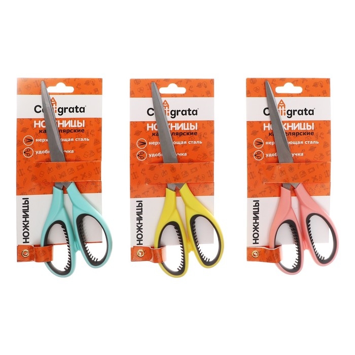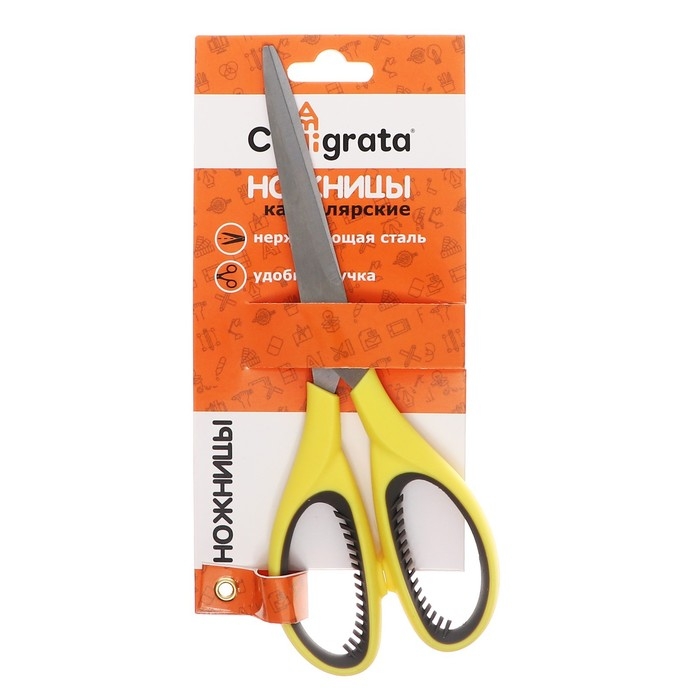 Ножницы канцелярские 20 см, с пластиковыми ручками и резиновыми вставками
