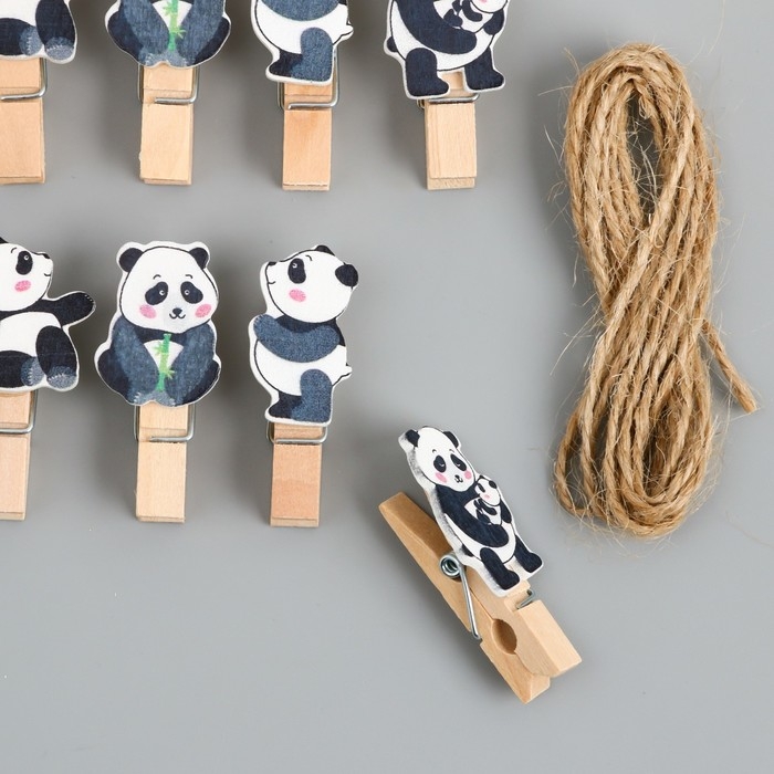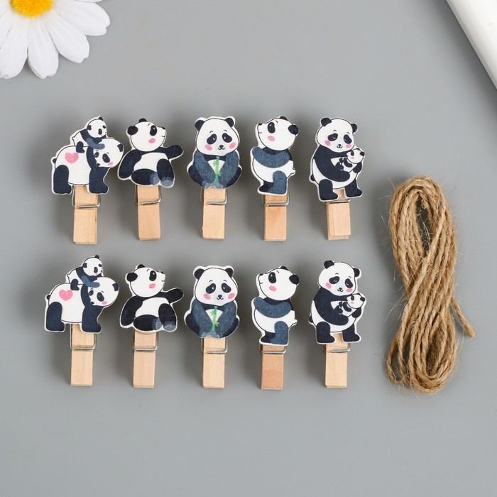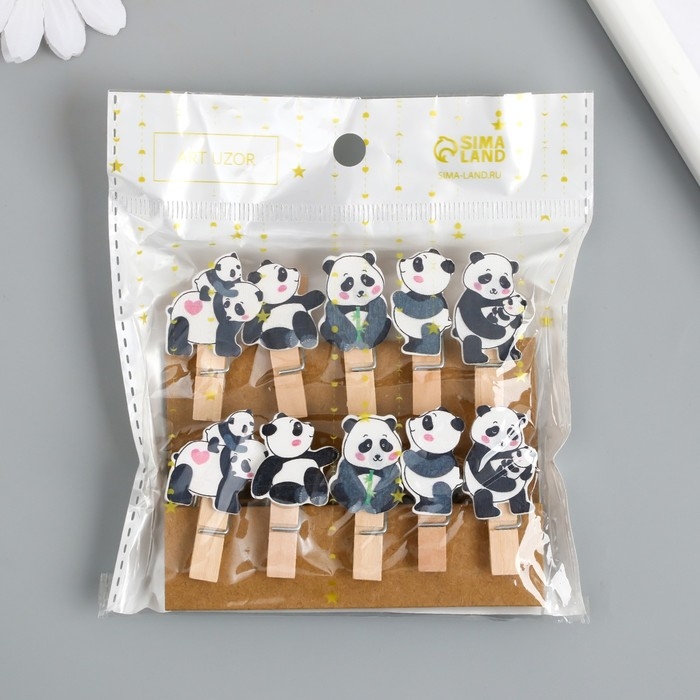 Декор для творчества дерево "Прищепка. Панды" набор 10 шт 4,2х2,3х1,2 см