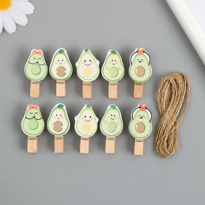 Декор для творчества дерево "Прищепка. Авокадо" набор 10 шт 3,8х1,9х1,2 см