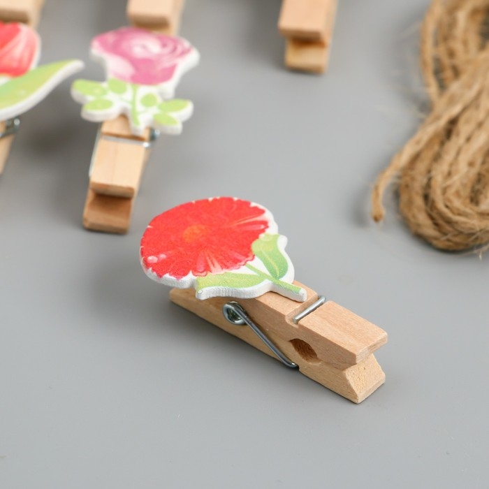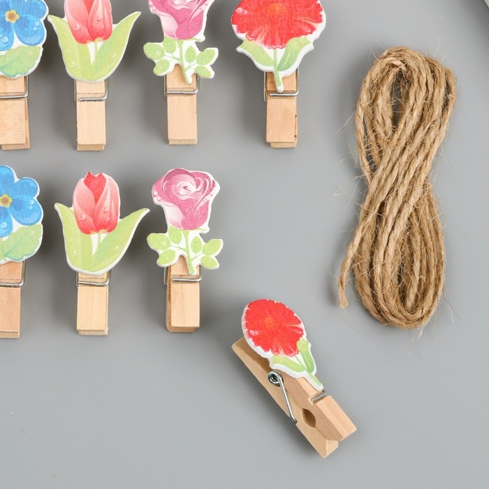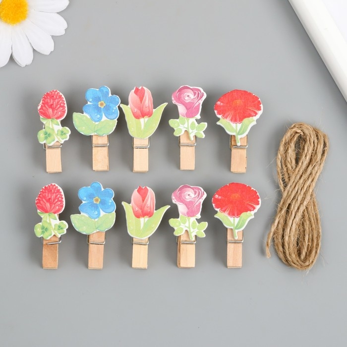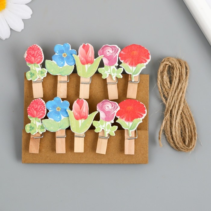 Декор для творчества дерево "Прищепка. Цветочки" набор 10 шт 4х2,3х1,2 см