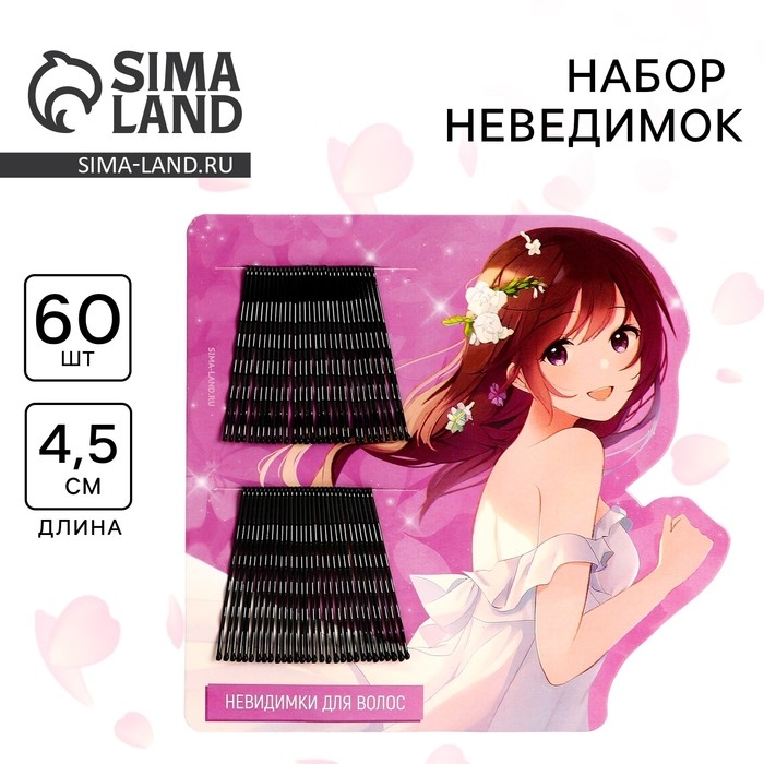 Невидимки для волос «Нежность» 60 шт, 4,5 см