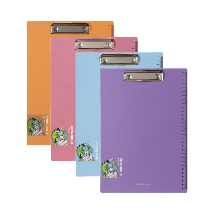 Планшет пластиковый А4, ErichKrause "Matt Manga", шкала 30см, в пакете, МИКС