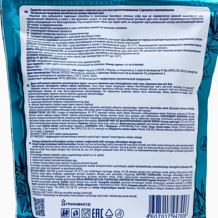 Соль для ванн морская "натуральная" можжевельник, 600 г