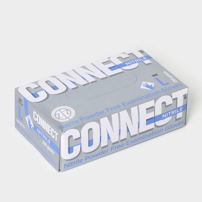 Перчатки нитриловые Nitrile, смотровые, нестерильные, размер L, 200 шт/уп (100 пар), цвет голубой