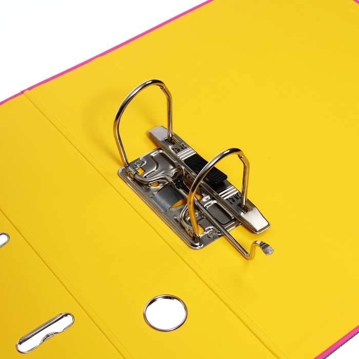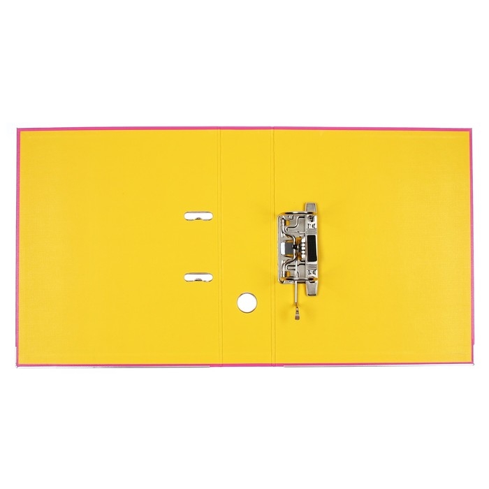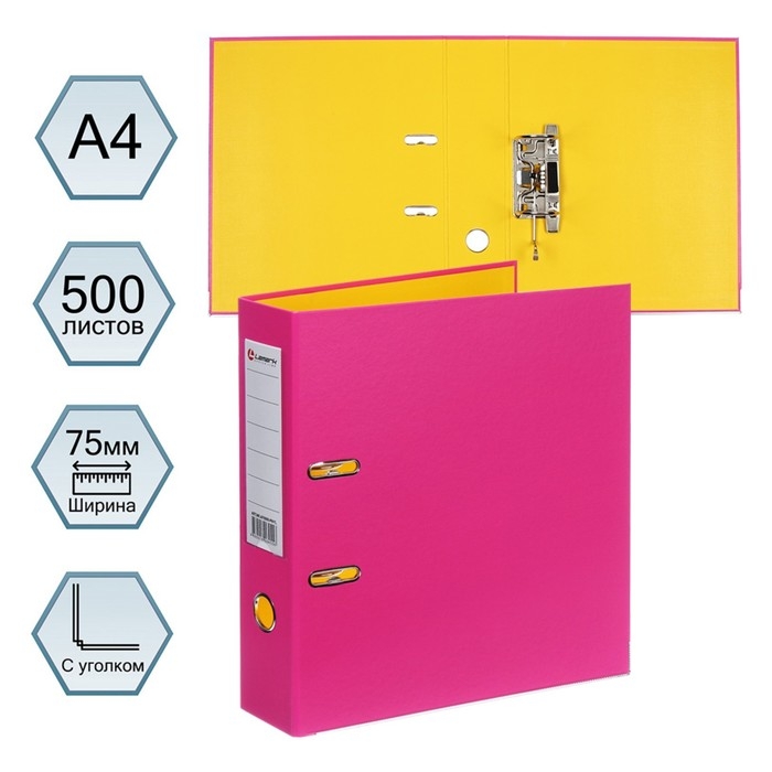 Папка-регистратор А4, 75 мм, Lamark, ПВХ, двухстороннее покрытие, металлическая окантовка, карман на корешок, собранная, розовый/желтый