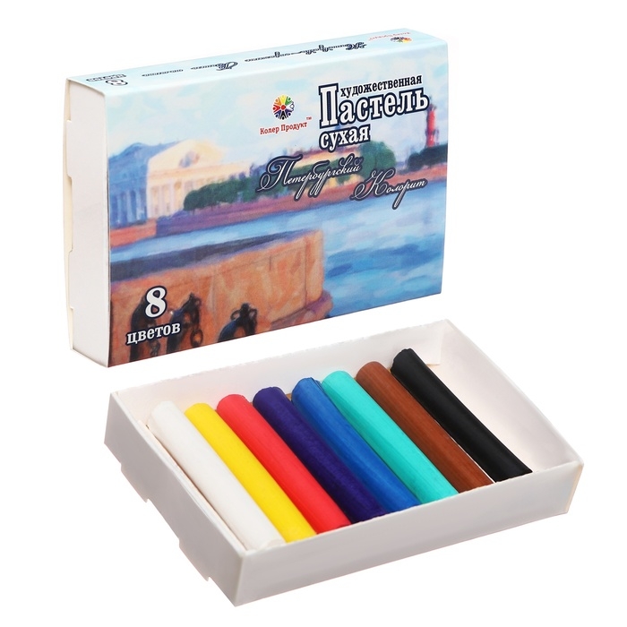 Пастель сухая, набор 8 цветов, Колер "Петербургская", D-8.5мм /L-60 мм, художественная