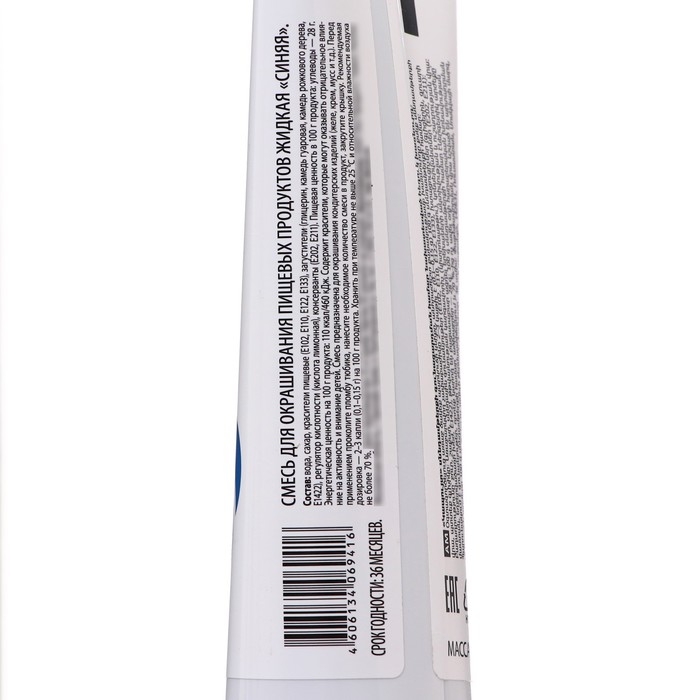 Рекомендации к применению: перед применением проколите пломбу тюбика (срезать не рекомендуется), внесите необходимое количество красителя в продукт и закрутите крышку. Рекомендуемая дозировка 2-3 капли (1-1,5 грамма) на 100 грамм продукта.