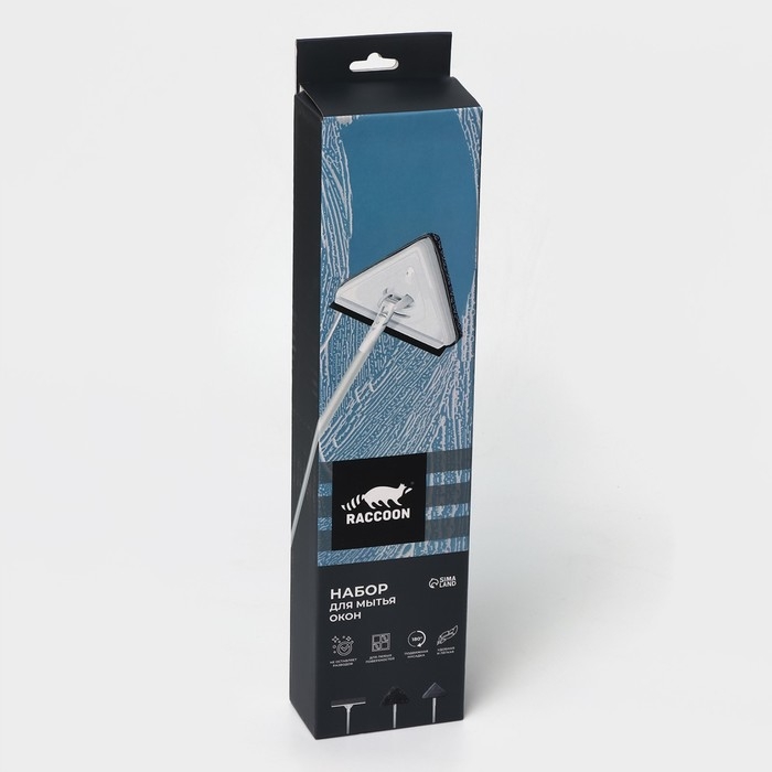 Окномойка с стальной ручкой и сгоном Raccoon, 25×17×105(148) см, 2 насадки из микрофибры
