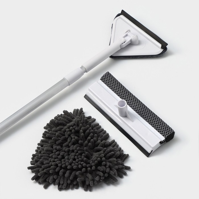 Щётка для окон Raccoon, поролоновая телескопическая насадка 47(80,5) см, две насадки из микрофибры с держателем 11,5×6,5 см
