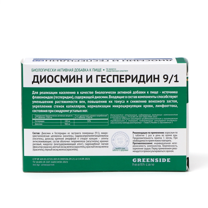 Диосмин и Гесперидин не являются лекарственным средством и не могут заменить полноценное питание. Перед применением необходимо проконсультироваться с врачом.