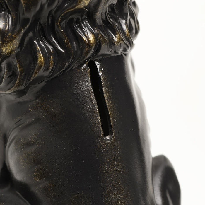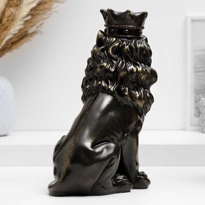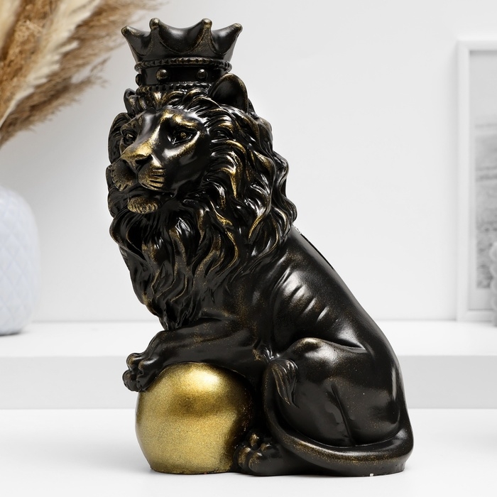 Копилка "Лев с короной и шаром сидит" черный с позолотой, 23см