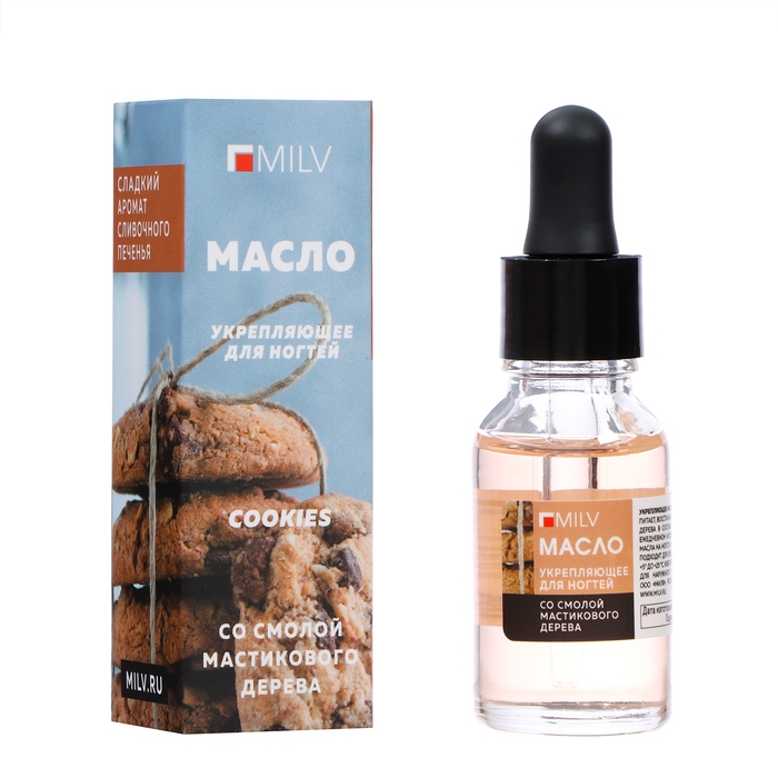 Масло для ногтей укрепляющее со смолой мастикового дерева MILV печенье, 15 мл