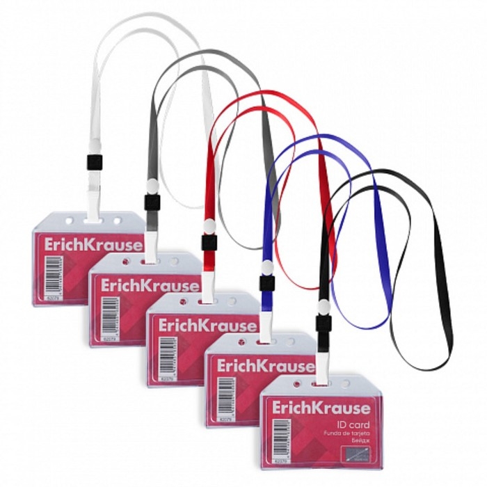 Бейдж горизонтальный 85 х 54 мм, ErichKrause прозрачный корпус, текстильная лента, цвет микс
