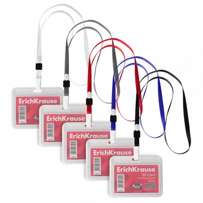 Бейдж горизонтальный 85 х 54 мм, ErichKrause книжка, прозрачный корпус, текстильная лента, цвет микс