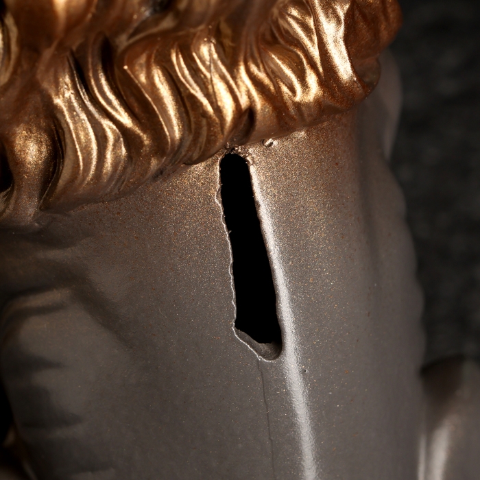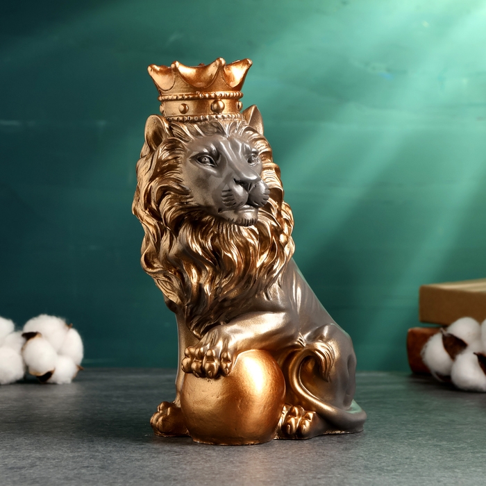 Копилка "Лев с короной и шаром сидит" серый с бронзой, 23см