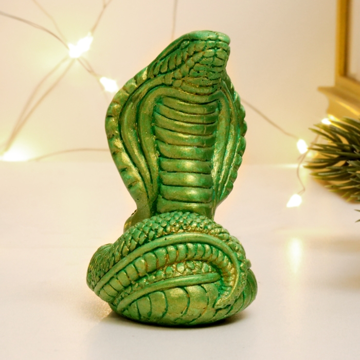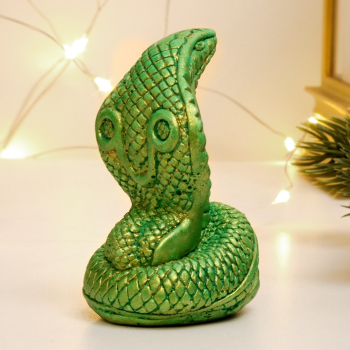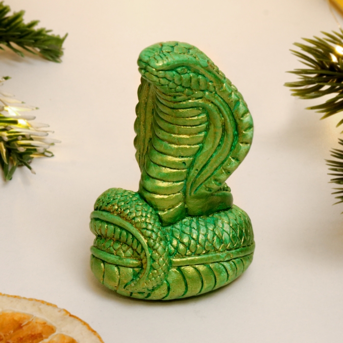 Новый год. Символ 2025. Фигура "Змея Кобра малая" зеленая с позолотой, 6х4х4см