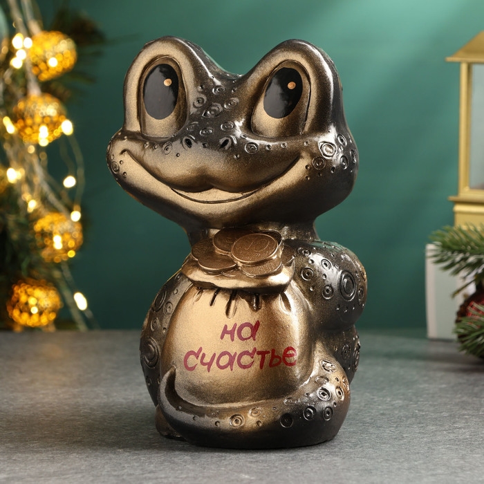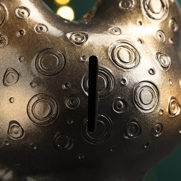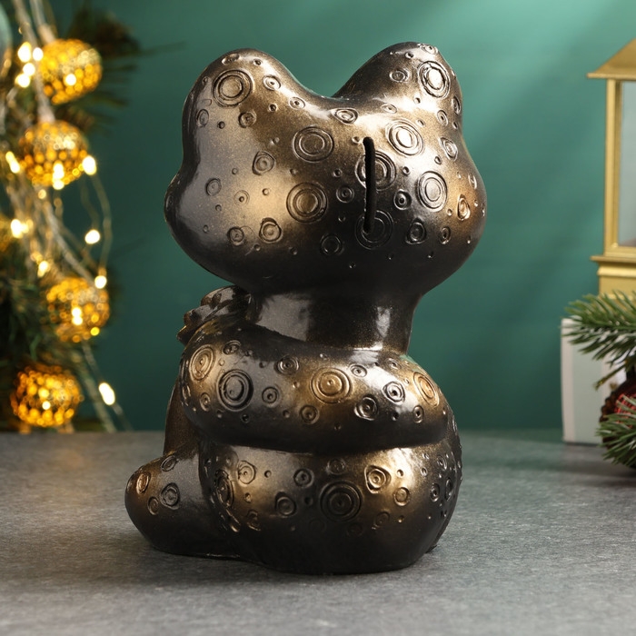 Новый год. Символ 2025. Копилка "Змея с мешком денег" черная-бронза, 18см