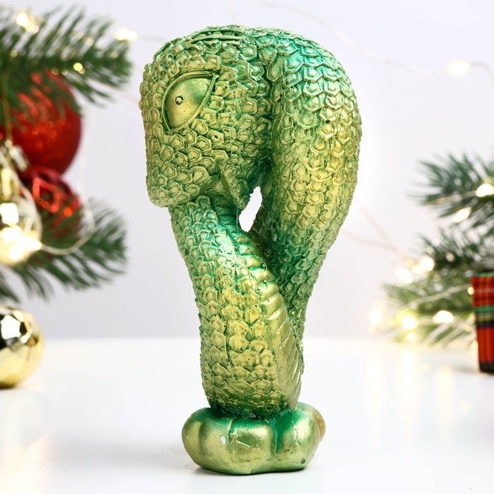Новый год. Символ 2025. Фигура "Змея Кронос" светло-зеленая, 10х5см